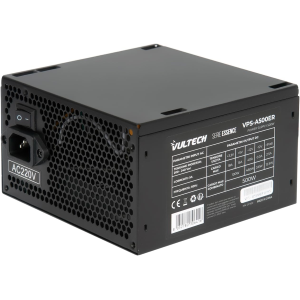 ALIMENTATORE VULTECH VPS-A500ER PC ATX 500W SERIE ESSENCE - VENTOLA 12CM TERMOREGOLATA E SILENZIOSA, CABLAGGIO INCLUSO, CAVI FLAT EXTRA LUNGHI 60CM, IDEALE PER DESKTOP UFFICIO E CASA