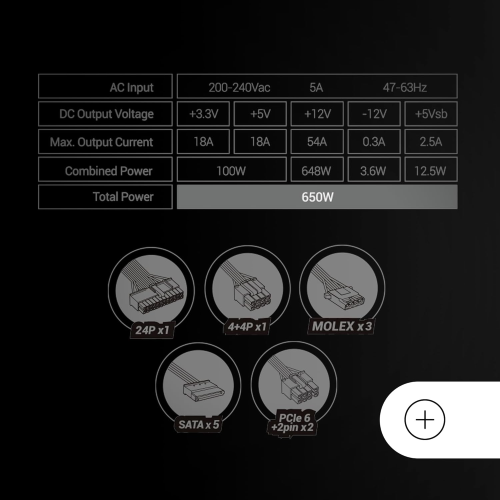 TECNOLOGIE DC-DC E SMD: L’alimentatore 80 Plus Bronze MPB650SI integra la tecnologia DC-DC per supportare le schede grafiche più esigenti con un potente rail da 12V e la tecnologia SMD, progettata per prolungare la durata dell’alimentatore e ridurre il consumo di energia del 20%, proteggendo i componenti più sensibili