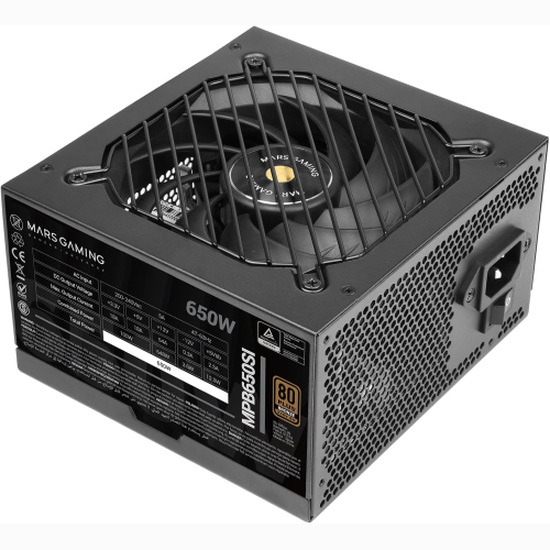 MARSGAMING MPB650SI, ALIMENTATORE PC ATX 650W, 7 Anni di Garanzia, 80Plus Bronze 90%, SI Fan, AI2-RPM, DC-DC e SMD, Black