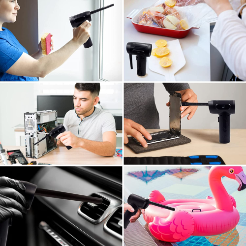 AMPIA GAMMA DI UTLIZZI: Diversi luoghi di pulizia, sostituzione di accessori appropriati, adatto per la pulizia in diverse scene, può pulire tastiere di computer, schede grafiche, lenti di fotocamere e tastiere meccaniche, sedili e otturatori, ecc. Il depolveratore ad aria compressa è la scelta migliore per la pulizia della casa, la pulizia industriale e la pulizia dell'auto.