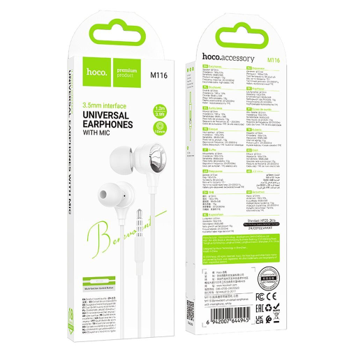 Le Hoco M116 sono cuffie cablate comode ed eleganti che offrono un suono di alta qualità e praticità d'uso. Dotate di microfono integrato e connettore jack da 3,5 mm, sono perfette per chiamate, ascolto di musica e gaming.