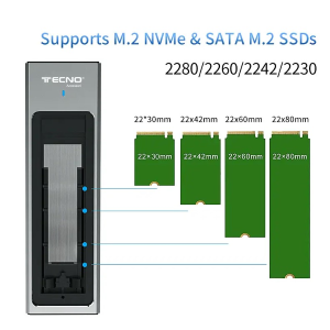 Il TC-M05ve un box in alluminio solido per SSD NVMe/PCIe fino a 80 mm con chiave M o chiave M+B compatibile con protocollo M.2 NVMe e M.2 SATA. Il prodotto viene fornito con un adattatore da USB-C a USB-C e da USB-C a USB-A. Retro-compatibile con USB 3.0 e USB 2.0 - 10 Gbps ad Alta Velocità: M2PV NVMe .L'adattatore utilizza un bridge dati USB 3.1 Gen 2 e un'interfaccia di tipo C. Supporta il protocollo di accelerazione UASP e la velocità di trasmissione dati teorica è fino a 10 Gbps. Quando si utilizzano supporti NVMe ad alte prestazioni, la capacità di lettura e scrittura può superare i 900 Mb/s