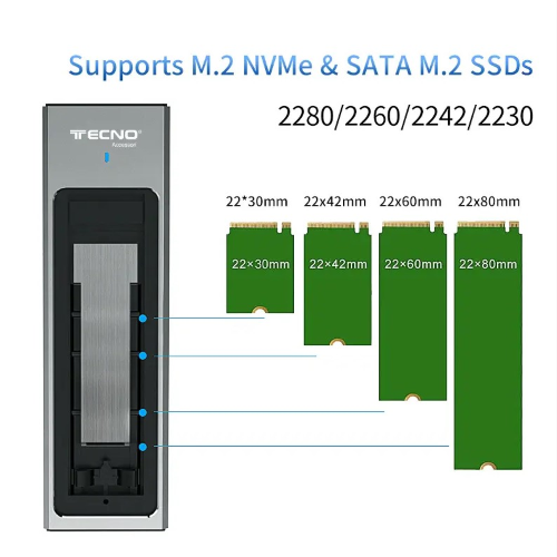 BOX ESTERNO PER HARD DISK M.2 NVME USB 3.2 CAVO USB TYPE-C + USB-A | TECNOACCESSORI TC-M05