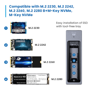 BOX ESTERNO PER HARD DISK M.2 NVME USB 3.2 TYPE-C | SENZA VITI | NERO EWENT EW7022