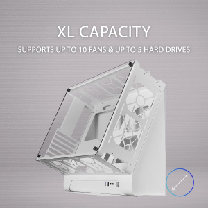 L'MCB ha un'ampia capacità per il PC dei tuoi sogni. Installa fino a 10* ventole e fino a 5 dischi rigidi, schede grafiche da 455 mm in orizzontale o verticale* e radiatori fino a 360 mm. *Nel sistema M-ATX. Fino a 8 in ATX. *Adattatore per il montaggio verticale della scheda grafica non incluso.