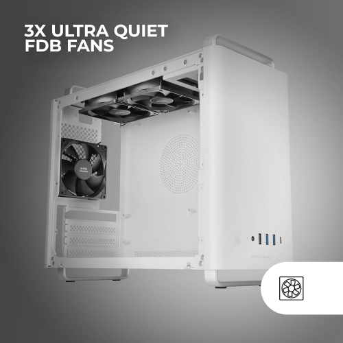 TECNOLOGIA MESH E VENTOLE FDB: I pannelli Mesh del MC-ELITE mini tower ottimizzano il flusso d'aria elevandone l'estetica e, insieme alle 3 ventole FDB preinstallate, definiscono un nuovo standard di prestazioni, fornendo un sistema di raffreddamento ottimale e silenzioso