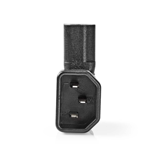 Adattatore di alimentazione angolare da IEC-320-C14 a IEC-320-C13 con angolo a sinistra. Con questo adattatore è possibile collegare un cavo di alimentazione ai dispositivi che hanno spazio ridotto sul retro per il collegamento.