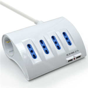 La multipresa da tavolo EW3934 offre 6 prese di corrente per apparati elettrici come computer, apparecchiature audio/video e altri dispositivi domestici. Grazie alle due porte USB è possibile ricaricare il proprio dispositivo mobile come Smartphone e Tablet. Le prese sono dotate di protezione bambini.