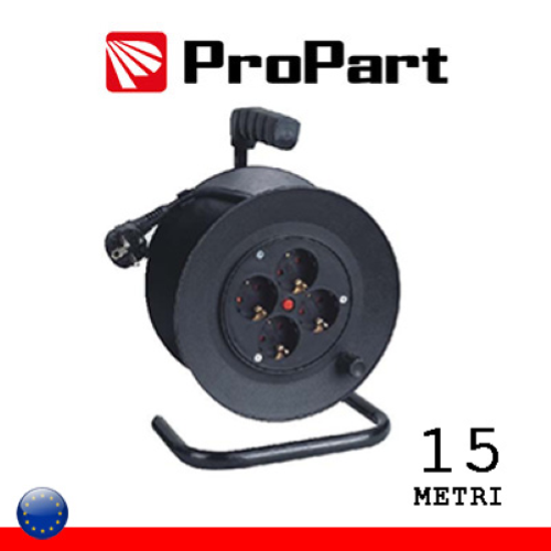 PROLUNGA AVVOLGICAVO 15 METRI CON MULTIPRESA 4 POSTI SCHUKO 16A CON PROTEZIONE TERMICA | PROPART PEAXS-15-BK