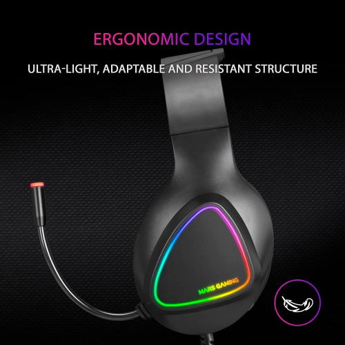 CUFFIE GAMING Mars Gaming MH222, Cuffie da Gioco Over Ear FRGB con Mic, HiFi, Cancellazione del Suono, Ultra Leggere, Black