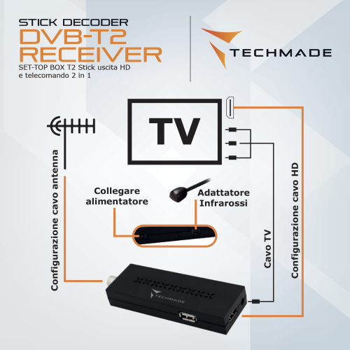 DECODER DIGITALE TERRESTRE DVB-T2 CON HDMI FULL HD TECHMADE TM-TD-01