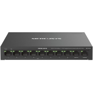 Mercusys MS110CP 8-Port PoE Plus 10/100Mbps Plus 2 Gigabit Port Switch include otto porte PoE Plus che trasmettono dati e alimentazione su un singolo cavo fino a 30 W per porta e 65 W totali.