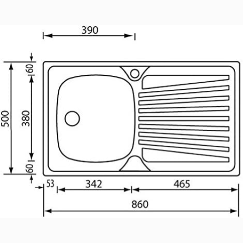 Cm lavello incasso mondial 86x50 1 vasca con gocciolatoio acciaio inox prelucidato - 011503 PS