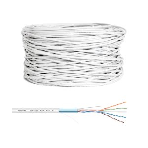Matassa LAN da 305 metri, compatibile con gli standard di Categoria Cat. 6, realizzata con conduttori rivestiti in alluminio e rame a traccia.
