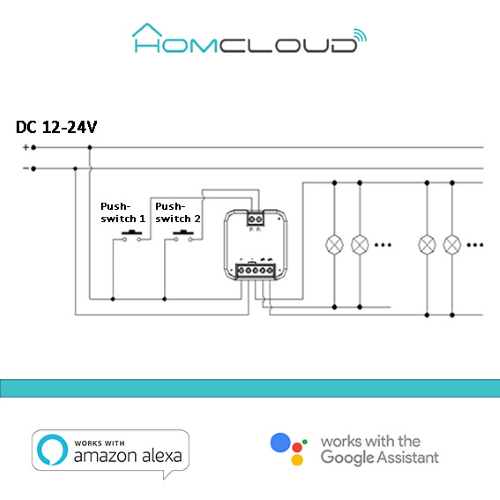 MODULO PULSANTE RELE' INTELLIGENTE WIFI 12/24V 2 CANALI HOMCLOUD TN-SBM2CL
