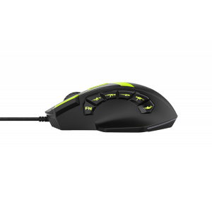 Mouse gaming ad uso professionale ,con 12 tasti programmabili tramite un software dedicato. Doppia configurazione OFFICE/GAME , 7200dpi , illuminazione RGB, cavo retinato e con filtro antidisturbo .