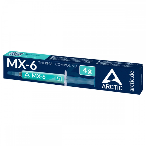 ARCTIC MX-6 è una pasta termica a base di cariche di carbonio e raggiunge le massime prestazioni senza burn-in dopo l'applicazione e la spalmatura. Ottiene le sue prestazioni senza ingredienti pretesi, come la costosa polvere di diamante o varie particelle di metalli preziosi. Il gel di silicone utilizzato come supporto favorisce una distribuzione ottimale, ottenuta grazie a una pressione di contatto uniforme, ad esempio durante il montaggio del dissipatore di calore.
