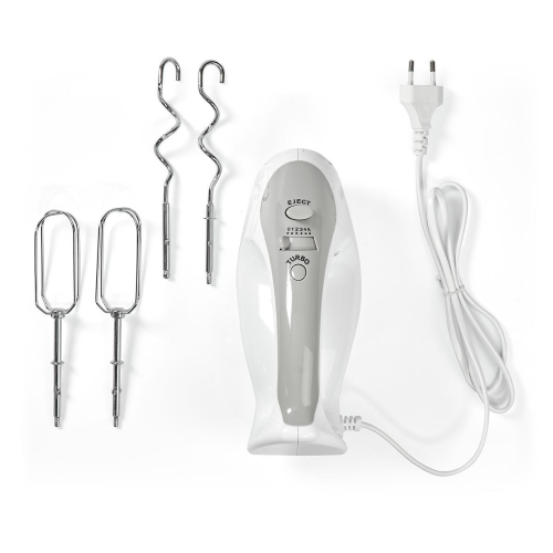SBATTITORE DA CUCINA 200 W | Impostazione a 5 velocità | Funzione turbo | 2 Battitori / 2 Dough Ganci | Bianco / Grigio NEDIS