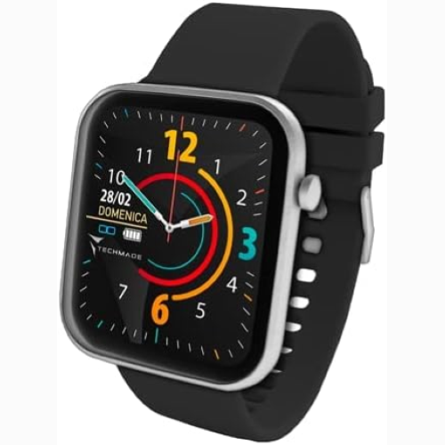 Techmade HAVA Smartwatch Nero Orologio Fitness Uomo/Donna Full Touch Pedometro, Calorie, Distanza, Cronometro, Sleep Monitor, Sfondo personalizzabile, Music Control