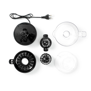 Il recipiente e il cono per la spremitura sono lavabili in lavastoviglie per pulirli con facilità. Coperchio antipolvere in dotazione.